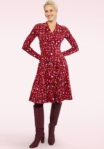 “Found my soul sister — keeping her forever.” Deze beauty heeft lange mouwen, een elegante V-halslijn met vaste overslag en flatterende plooitjes. De subtiele tailleband accentueert je figuur op een natuurlijke manier, terwijl de knielange, zwierige rok prachtig met je meebeweegt. Ze is uitgevoerd in een supercomfortabele, stretchy bordeauxrode bio-katoenmix met een fantastische print van bloemen, hartjes, duifjes en natuurlijk soulsister. * Swing model * Lange mouwen * Vaste geplooide overslag * Geen rits of knopen; aantrekken en ready to go! * Valt net over de knie bij een lengte van 1,70 m