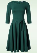 ”Prima ballerina!” Met haar zwierige swing stijltje, flatterende 3/4 mouwen en klassieke ronde halslijn is deze classy beauty geschikt voor iedere gelegenheid. Uitgevoerd in een heerlijk dikke maar soepele en stretchy, bosgroene viscosemix die heerlijk draagt. DE perfecte basisjurk! * Swing stijl * Ronde halslijn * 3/4 mouwen * Zijwaartse steekzakken * Blinde rits aan de achterzijde * Valt bij een lengte van 1,70 m net over de knie