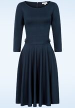 ”Prima ballerina!” Met haar zwierige swing stijltje, flatterende 3/4 mouwen en klassieke ronde halslijn is deze classy beauty geschikt voor iedere gelegenheid. Uitgevoerd in een heerlijk dikke maar soepele en stretchy, marineblauwe viscosemix die heerlijk draagt. DE perfecte basisjurk! * Swing stijl * Ronde halslijn * 3/4 mouwen * Zijwaartse steekzakken * Blinde rits aan de achterzijde * Valt bij een lengte van 1,70 m net over de knie