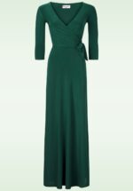 Topvintage exclusive ~ Annika slinky maxi jurk in bosgroen