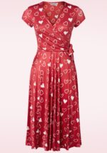 Layla Hearts overslag swing jurk in rood en wit
