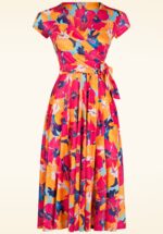 Een echte vintage beauty en perfect voor elke gelegenheid! Sadie heeft een vaste overslag, korte vlindermouwtjes en loopt vanaf de taille uit in een flowy semi-swing rok. Ze is uitgevoerd in een glad en soepel, stretchy en slinky stofje met een print van vervaagde strepen in roze en oranjetinten, dat heerlijk draagt en niet kreukt. Geniet van de complimentjes die je krijgt, zodra je Sadie draagt! * Semi-swing stijl * Gevoerde top * Vaste overslag * Korte vlindermouwen * Geplooide tailleband * Geen rits of knopen; aantrekken en ready to go! * Valt bij een lengte van 1,70 m over de knie