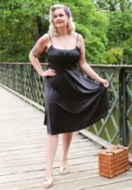 ”Roses are red, violets are blue, chillies are hot and so are you!” 😉 Jessie is uitgevoerd in een glad, soepel en stretchy, zwart slinky stofje dat bezaaid is met lieflijke witte dotjes. * Zwierig model * Gevoerde top met een geplooide halslijn * Verstelbare schouderbandjes * Geen rits of knopen; aantrekken en ready to go! * Valt bij een lengte van 1,70 m boven de knie