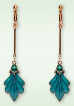 ”Adorn your ears with elegance!” Deze Art Deco Palm Leaf oorbellen zijn; klassiek, sierlijk en adembenemend mooi! Ze zijn uitgevoerd in (antiek) goudkleurig messing en zijn versierd met groene handbeschilderde emaille. Vergeet je haar niet op te steken want deze beauty’s mogen gezien worden! * Messing (antiek goudkleurig metaal) * Handbeschilderd emaille * Hypoallergene hangertjes * Nikkelvrij
