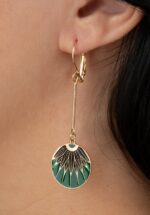 Geef je outfit een roaring twenties touch met deze Art Deco Disc oorbellen in smaragdgroen. Een lange oorbel in antiek goudkleurig metaal met een rond handbeschilderd geëmailleerd hangertje in smaragdgroen voorzien van bladvormige details en een vleugje art-deco… wow! * Antiek goudkleurig metaal * Leverback sluiting * Handbeschilderd emaille * Nikkelvrij