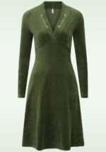 “Cozy, chic, and made to move.” Deze beauty heeft lange mouwen en een vrouwelijke V-hals met sjaalkraag, afgewerkt met prachtige geborduurde bloemetjes. Ze loopt uit in een zwierig A-lijntje dat elke figuur flatteert. Uitgevoerd in een supercomfortabele, zachte en stretchy bio-katoenmix met de luxe look & feel van fluweel, in een prachtige groene kleur. * A-lijn model * V-halslijn met sjaalkraag * Geen rits of knopen; aantrekken en ready to go! * Valt net over de knie bij een lengte van 1,70 m