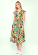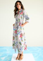 “Step into summer, Italian style.” Deze maxi-beauty heeft een elegant puntig kraagje, een stijlvolle knopenrij aan de voorzijde en een strikband in de taille die je silhouet prachtig accentueert. Uitgevoerd in een soepele, luchtige katoenmix met een lichte stretch voor een comfortabele pasvorm, en afgewerkt met een kleurrijke print vol Italiaanse zomervibes. * Maxi jurk * Puntig kraagje * Knopenreeks * Afneembare strikriem * Voorzien van zakken! * Reikt bij een lengte van 1,70 m tot boven de enkel * Let op; de kleur van het product op de video kan afwijken van de daadwerkelijke kleur van het product