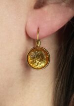 Op zoek naar oorbellen die écht bij iedere outfit passen? Dan zijn deze schatjes perfect voor jou! Of je nu voor de classy fifties look gaat, of toch liever seventies boho chique, deze korte hangers zijn lichtgewicht en passen werkelijk overal bij. Uitgevoerd met een verguld haakje en voorzien van een steen met sprankelende, goudkleurige glitters… ”eye and ear candy!” * Hangertjes * Vergulde roestvrijstalen leverback sluiting * Verkleuren en vlekken niet * Nikkelvrij (anti-allergeen)