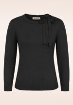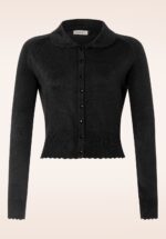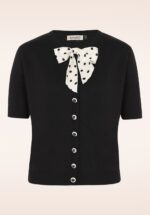 Deze schattige 40s April Bow Cardigan in Black heeft ons weten te strikken! Classy en schattig met haar elegante halve mouwtjes, speelse Peter Pan kraagje en lieflijke strikjes. Uitgevoerd in een zachte, stretchy, fijngebreide zwarte viscosemix waardoor ze heerlijk draagt. De combinatiemogelijkheden zijn eindeloos! * Korter model * Rij verborgen drukknoopjes * Stretchy ribboord langs de mouwtjes en onderkant