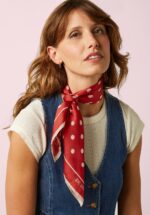 In je haar, om je hals of aan je tas! Dit chilirode sjaaltje met vrolijke witte polkadots is uitgevoerd in een glanzende stof met de luxe look and feel van satijn. * Vierkant sjaaltje * Op meerdere manieren te dragen