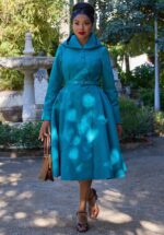 ”In midnight blue, she walked like a secret!” Deze Fairy Tale swing jas is exclusief bij Topvintage verkrijgbaar en is een sprookje om te zien, maar ze houd je ook nog eens heerlijk warm tijdens de koude dagen! Ze heeft een knopenreeks en een classy puntige kraag. Uitgevoerd in een super zachte, ietwat dikkere, nachtblauwe stof (stretcht niet) die volledig is gevoerd. ”Chic as frost!” * Swing model * Knopenrij * Geheel gevoerd * Voorzien van zakken! * Afneembare strikband voor een extra ‘snatched’ taille * Valt bij een lengte van 1,70 m ruim over de knie * Exclusief bij Topvintage verkrijgbaar