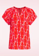 ”The palm trees are calling and I must go!” Deze kleurrijke cutie is ideaal voor mee op reis! Ze is namelijk uitgevoerd in een soepele en luchtige 100% rayon EcoVero (non-stretchy) in rood met een tropische print van palmbomen. ”Paradise found!” * Loose fit model * V-halslijn * Korte mouwtjes * Lang genoeg om op een normale heupbroek te dragen