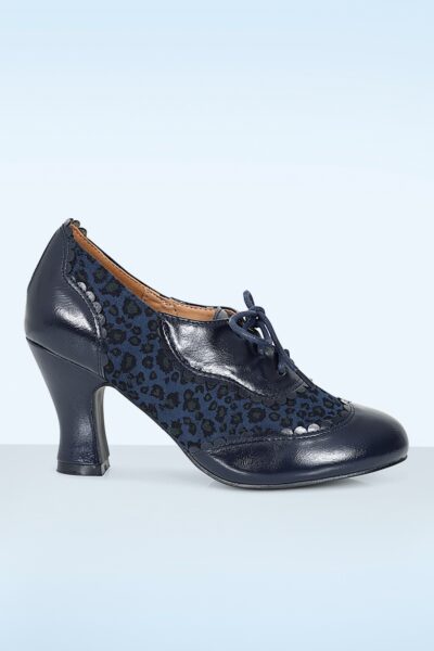 ”Call me shoe-perficial… I don’t care!” 😉 Deze shoe booties met Louis stijl hak zijn uitgevoerd in een combinatie van glanzend donkerblauw imitatie leder en een leopard print suèdine stofje met geschulpte biesjes en een handige striksluiting.   * Rond neusje * Striksluiting * Stevig hakje in Louis stijl * Comfy binnenzool * Anti-slip zool