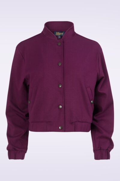 ”Bold blooms, vintage vibes!” Dit donkerpaarse/bordeaux jasje is een echte blikvanger. De voorkant oogt clean en tijdloos met stoere drukknopen, maar de achterkant verrast met een prachtige geborduurde bloemenpatch die een speelse, vrouwelijke touch geeft. Uitgevoerd in een stevige maar soepel vallende, stretchy mix van organisch katoen en gerecyclede materialen – duurzaam, comfortabel én perfect om elke outfit een retro flair te geven.    * Jack * Opstaand kraagje * Lange mouwen * Drukknopen * Voorzien van zakken * Bloemen borduursel achterzijde  * Lang genoeg om op een normale heupbroek te dragen
