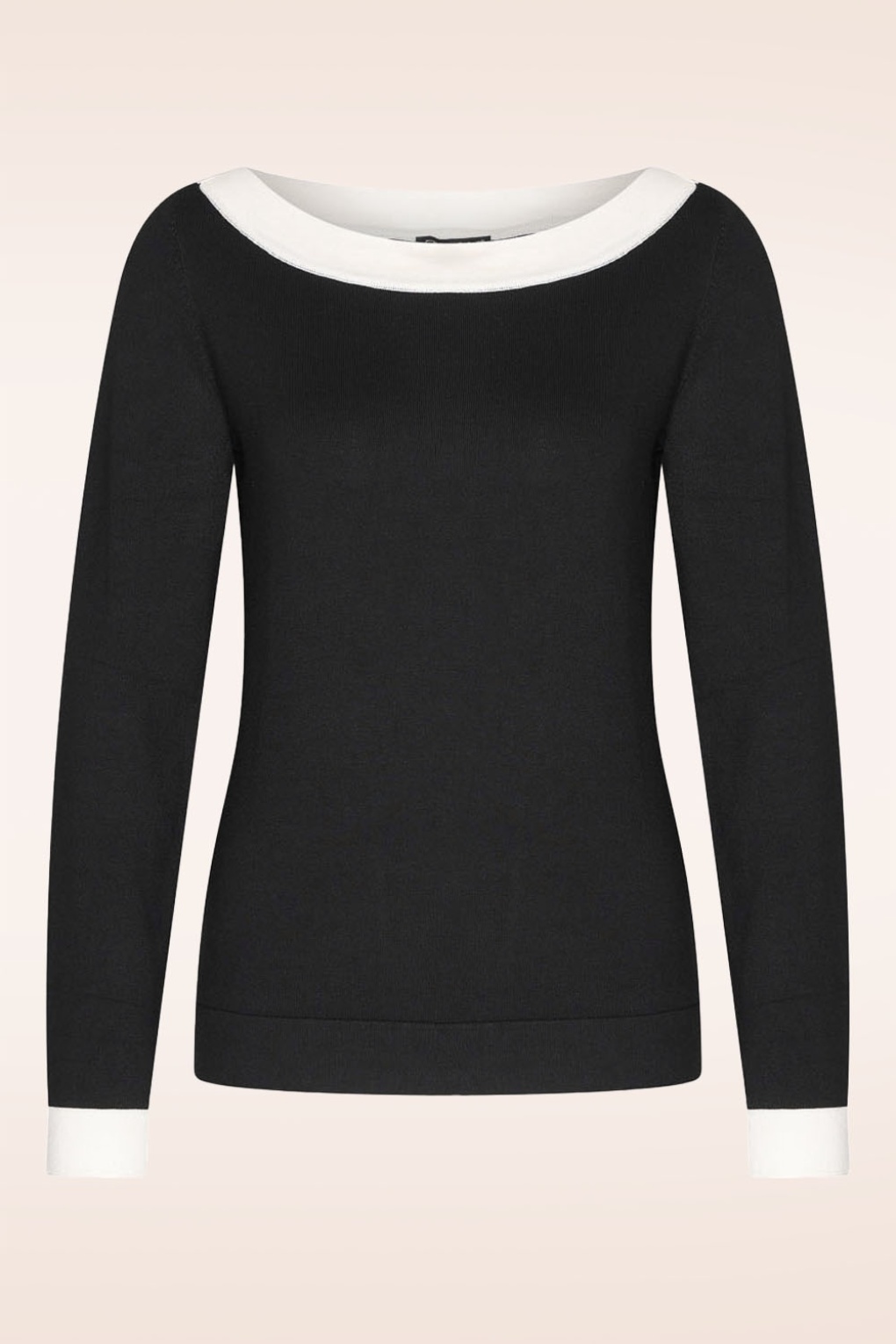 Audrey Hepburn wist het al lang; een top met een boothals is super elegant! Uitgevoerd in een fijngebreide, zachte en stretchy bamboomix in zwart met contrasterende, witte details die heerlijk draagt. * Boothals * Lange mouwen  * Lang genoeg om op een normale heupbroek te dragen