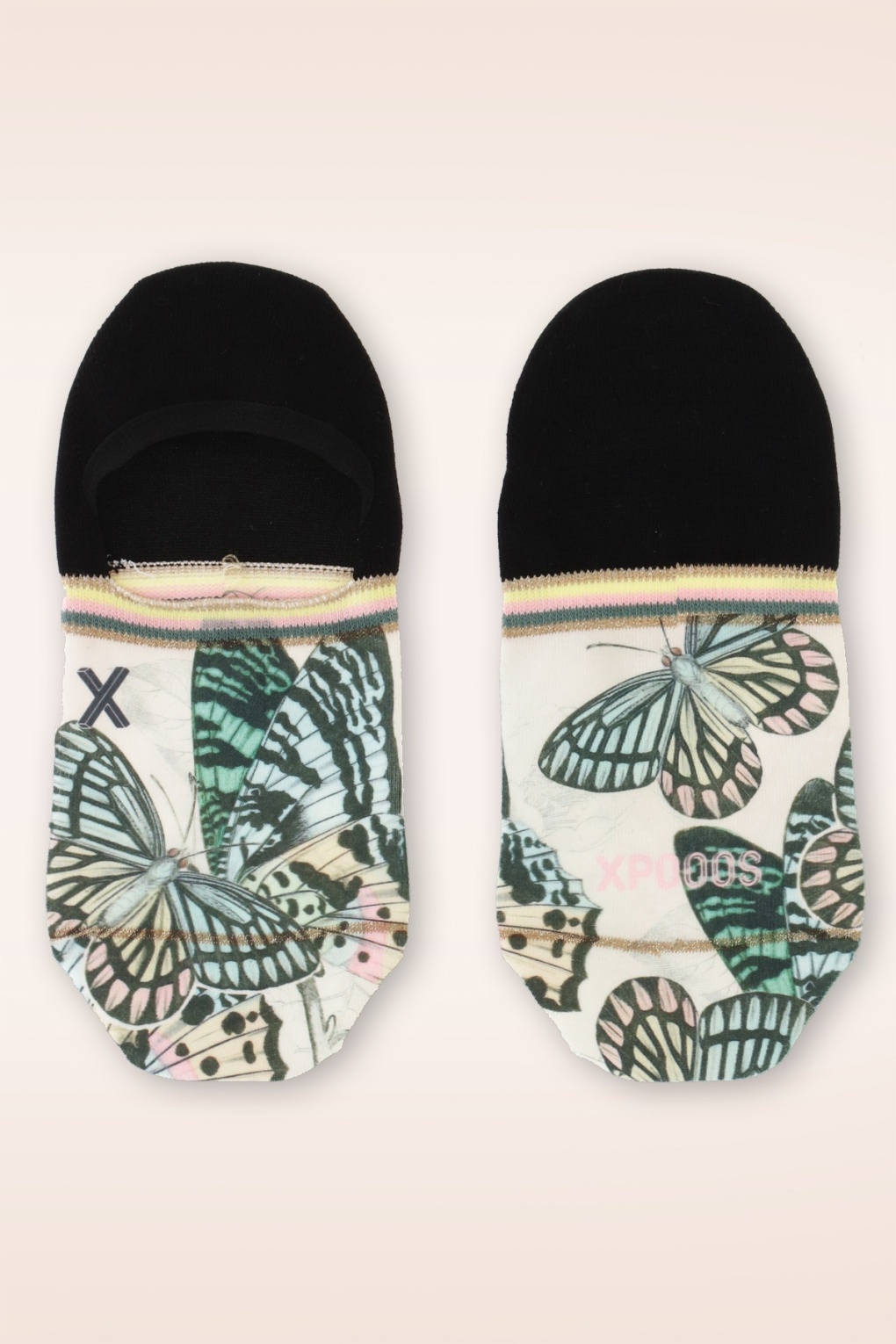 Vind jij sneakers of ballerina’s te gek maar vind je het vreselijk deze met blote voeten te dragen? Deze ‘onzichtbare’ kousjes zijn de oplossing! Uitgevoerd in een stretchy, luxueuze, zachte stof met een prachtige vlinder print. * Sneakersokjes * Platte teennaad * Anti-slip siliconen hiel * Stretchy
