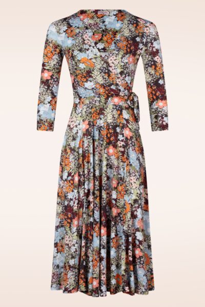 Voel je op en top vrouw in deze Colette Floral swing jurk! Ze heeft een prachtige geplooide overslagtop met een sexy V-halslijn en een sierlijk strikdetail in de taille. De flatterende swing rok en 3/4 mouwen zorgen voor een flinke portie elegantie, wow! Ze is uitgevoerd in een glad en soepel, licht glanzend, stretchy, kaki stofje voorzien van een kleurrijke bloemenprint en dat garant staat voor veel kreukvrij draagplezier. Geniet van de complimentjes die je krijgt, zodra je Colette draagt! * Swing stijl * Vaste gevoerde overslag * 3/4 mouwen * Vaste strikbandjes * Geen rits of knopen; aantrekken en ready to go! * Valt bij een lengte van 1,70 m over de knie