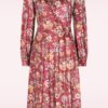 Dalida Floral fluwelen wikkeljurk in dieprood