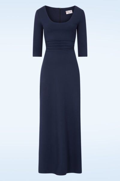 ”The kind of blue that leaves you breathless!” Deze maxi beauty heeft een diepe, ronde halslijn, 3/4 mouwen en loopt vanaf de taille uit in een maxi rok. Uitgevoerd in een soepele en stretchy, navyblauwe crêpe achtige stof die comfy is om te dragen.    * Maxi jurk * Gevoerde top * Diepe, ronde hals * Geplooide taille * 3/4 mouwen * Blinde rits achterzijde * Reikt bij een lengte van 1,70 m tot aan de enkel