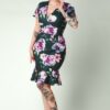 Topvintage exclusive ~ Katie Floral Jacquard pencil jurk in donkergroen en paars