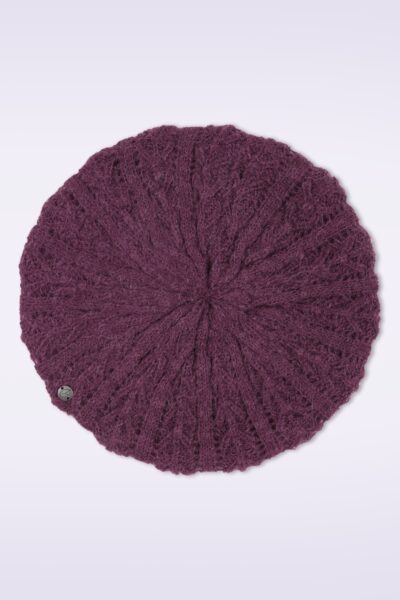 “A beret a day keeps the chill away.” Deze baret in pruimpaars is uitgevoerd in een gebreide, stretchy stofmix met een vleugje alpacawol. * One size * Stretchy * Alpacawol