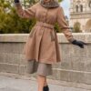 • Adia Sadie A-lijn wollen winter mantel in zand € 225,95