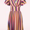 Topvintage exclusive ~ Sadie Stripes swing jurk in mosterdgeel en multi