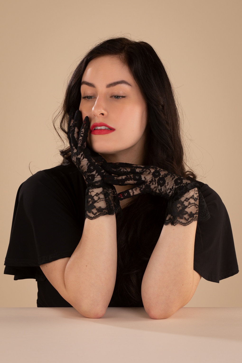 Draag deze Flower Lace Wrist Gloves in Black en zwaai naar al je bewonderaars, darling! Chique handschoentjes uitgevoerd in prachtig, zwart bloemenkant met een lichte stretch en een uitlopende franje bij de pols. ”These gloves are never coming off!” 😉    * Bloemenkant * Stretchy