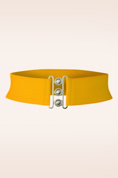 Deze 50s Lauren Retro Stretch Belt in Mustard maakt al jouw outfits compleet! Vrouwelijk silhouette? Wespentaille? Bring it on met deze Lauren riem! Uitgevoerd met een brede, elastische, mosterdgele band en afgewerkt met een zilverkleurige gesp die sluit in de taille. Draag hem in combinatie met onze swing jurken om je taille te accentueren voor een prachtig silhouet!   * Zilverkleurige gesp * Elastisch