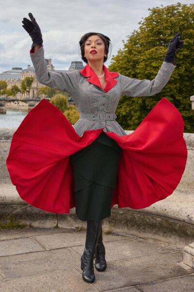 “Two looks in one timeless piece!” Dit prachtige herfstitem uit de nieuwe collectie is geïnspireerd op de extraordinaire Marie-Louise Carven, een baanbrekende Franse couturière uit de jaren ’40 en ’50. Ze is een vintage-geïnspireerde beauty die moeiteloos wisselt tussen een opvallend rood en een klassiek grijs ruitpatroon, met prachtige contrasterende biezen. Ze heeft een flatterende fit-and-flare pasvorm, dubbele knopen en een bijpassende ceintuur, waardoor deze manteljurk zowel elegant als praktisch is. En ja, ze heeft zakken aan beide zijden! Uitgevoerd in een stevige, maar soepel vallende stofmix met een vleugje viscose en een hele lichte stretch, waardoor ze heerlijk comfortabel draagt. * Reversible manteljurk * Revers kraag * Functionele knopenreeks voorzijde  * Afneembare riem, voor een extra ‘snatched’ taille * Voorzien van zakken * Valt bij een lengte van 1,70 m over de knie
