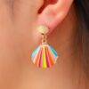 Striped Shell Dangle oorbellen in goud