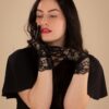Korte handschoenen met bloemenkant in zwart
