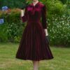 Vera fluwelen swing jurk in bordeauxrood