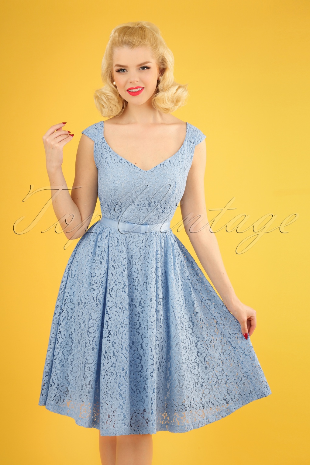 Voel je een echte classy lady in deze 50s Love Lace Swing Dress in Lavender Blue! Kant… we kunnen er geen genoeg van krijgen! Deze Love(ly) Swing Dress in uitgevoerd in soepel, lichtlavendelblauwe kant (stretcht niet!) en gevoerd zodat ze niet kriebelt 😉 ”A lace dress a day keeps the doctor away!” * Semi-swing model * V-halslijn * Kan ietwat off-shoulder gedragen worden * Vaste strik * Zijwaartse steekzakken * Gevoerd * Blinde rits en haaksluiting achterzijde * Onze gorgeous blondine Rachel is 1,72 m
