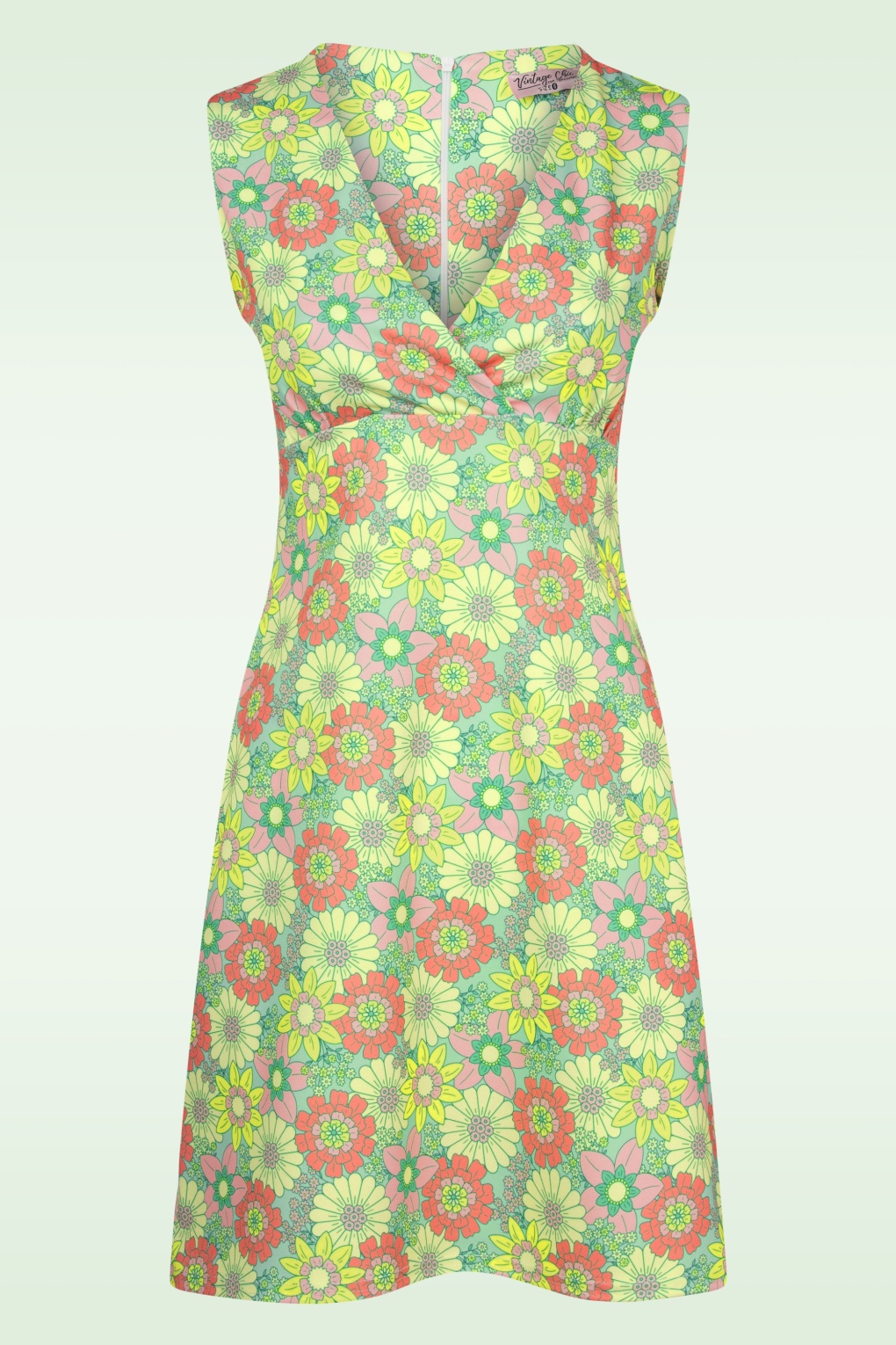 ”I see it, i like it, i want, i got it!” 😉 Marion is uitgevoerd in een iets dikker, stretchy, crêpe-achtig mintgroen stofje met een kleurrijke bloemenprint in pastelkleurtjes dat heerlijk draagt!   * A-lijn model * V-hals met overslag * Gevoerde top * Blinde rits achterzijde * Valt bij een lengte van 1,70 m net boven de knie