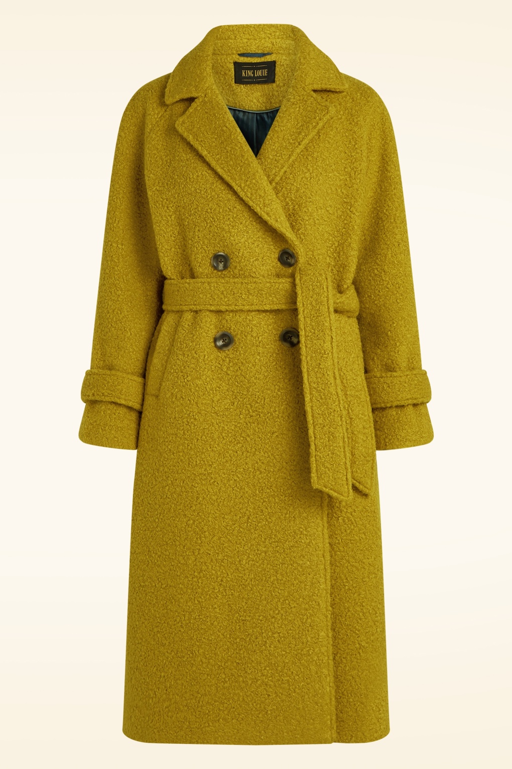“Bouclé warmth, effortlessly bold.” Deze lange mantel is niet alleen prachtig om te zien, maar houdt je ook nog eens heerlijk warm. Ze heeft een klassieke reverskraag, handige zijwaartse steekzakken, een dubbele knopenrij en een afneembare strikband die je taille mooi definieert. Uitgevoerd in een zware, gerecyclede, currygele bouclé stof (stretcht niet) die volledig is gevoerd met een satijnachtig stofje. * Gevoerd * Gerecyclede stof * Reverskraag * Lange mouwen * Afneembare strikband * Steekzakjes * Dubbele knopenreeks * Valt over de knie bij een lengte van 1,70 m