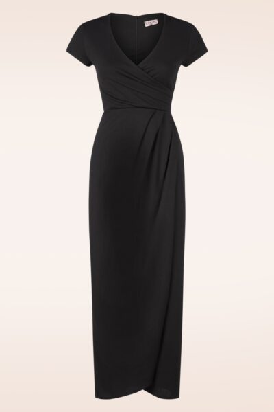 Voel je MAXImaal speciaal in Meila! Ze heeft een overslag top met flatterende zijplooien en loopt vanaf de taille uit in een lange maxi rok met een sexy sarong look. Ze is uitgevoerd in een soepele en stretchy, zwarte stof die heerlijk draagt.   * Maxi jurk * Gevoerde overslag top * Korte mouwen * Vaste overslag rok * Blinde rits achterzijde * Reikt tot aan de grond bij een lengte van 1,70 m