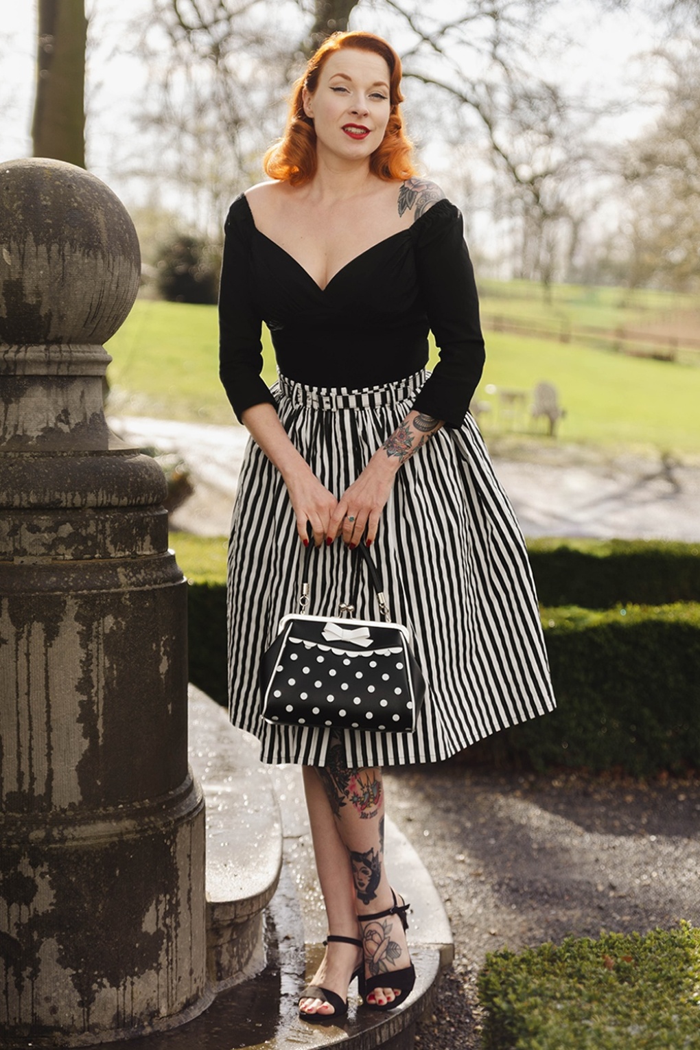 ”Stripes all day, every day!” Deze beauty zwiert sierlijk met je mee bij elke stap en heeft een knopenreeks aan de voorzijde en handige steekzakken. Ze is uitgevoerd in stevig maar luchtig katoen (stretcht niet) met witte en zwarte strepen. * Swing model * Afneembare riem, voor een extra ‘snatched’ taille * It has pockets! * Knopenreeks voorzijde  * Valt bij een lengte van 1,70 m over de knie * Marjolein is 1,82 m