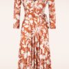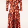 Topvintage exclusive ~ Colette Floral swing jurk in roest en crème
