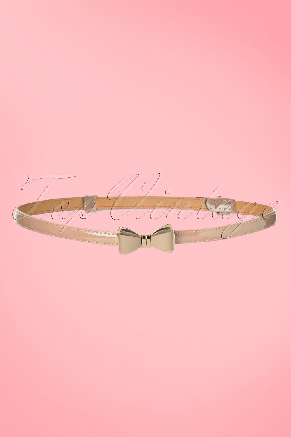 Deze 50s Ocean Avenue Bow Belt is een classy riem in vintage look en een aanvulling op elke vintage outfit. Deze prachtige smalle verstelbare ceintuur is uitgevoerd in nudekleurig ‘faux’ lakleder met een elegant goudkleurig strikje, très chique! Subtiel riempje met een hoge wow-factor en een echte must-have voor alle vintage ladies!    * Sluit d.m.v. goudkleurige haaksluiting in de vorm van strikje  * Verstelbaar