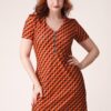 Topvintage exclusive ~ Daisy Geo Retro jurk in oranje en zwart