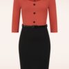 Topvintage exclusive ~ Carla Pencil jurk in zwart en oranje