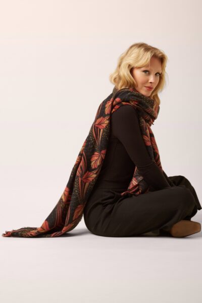 Warm én in stijl blijven was nog nooit zo makkelijk met deze lange, comfy sjaal! Gemaakt van een heerlijk warm en zacht geweven, zwarte stof voorzien van een prachtig patroon in warme tinten. Wikkel haar een, of meerdere keren om je hals en laat het koude weer maar komen!   * Zacht en warm * Lang, rechthoekig model