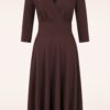 Topvintage exclusive ~ Caroline swing jurk in chocoladebruin