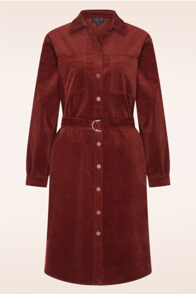 “Rich as autumn leaves… this burgundy shirt dress is a modern classic with a bold, luxe twist.” Een rechte jurk, uitgevoerd in een stevige, maar zachte katoenmix van ribfluweel in bruinrood, voorzien van een fijne stretch, waardoor ze heerlijk draagt.    * Recht model * Knopenreeks * Puntig kraagje * Lange mouwen * Zakjes op de borst  * Afneembare, matching riem * Valt boven die knie bij een lengte van 1,70 m