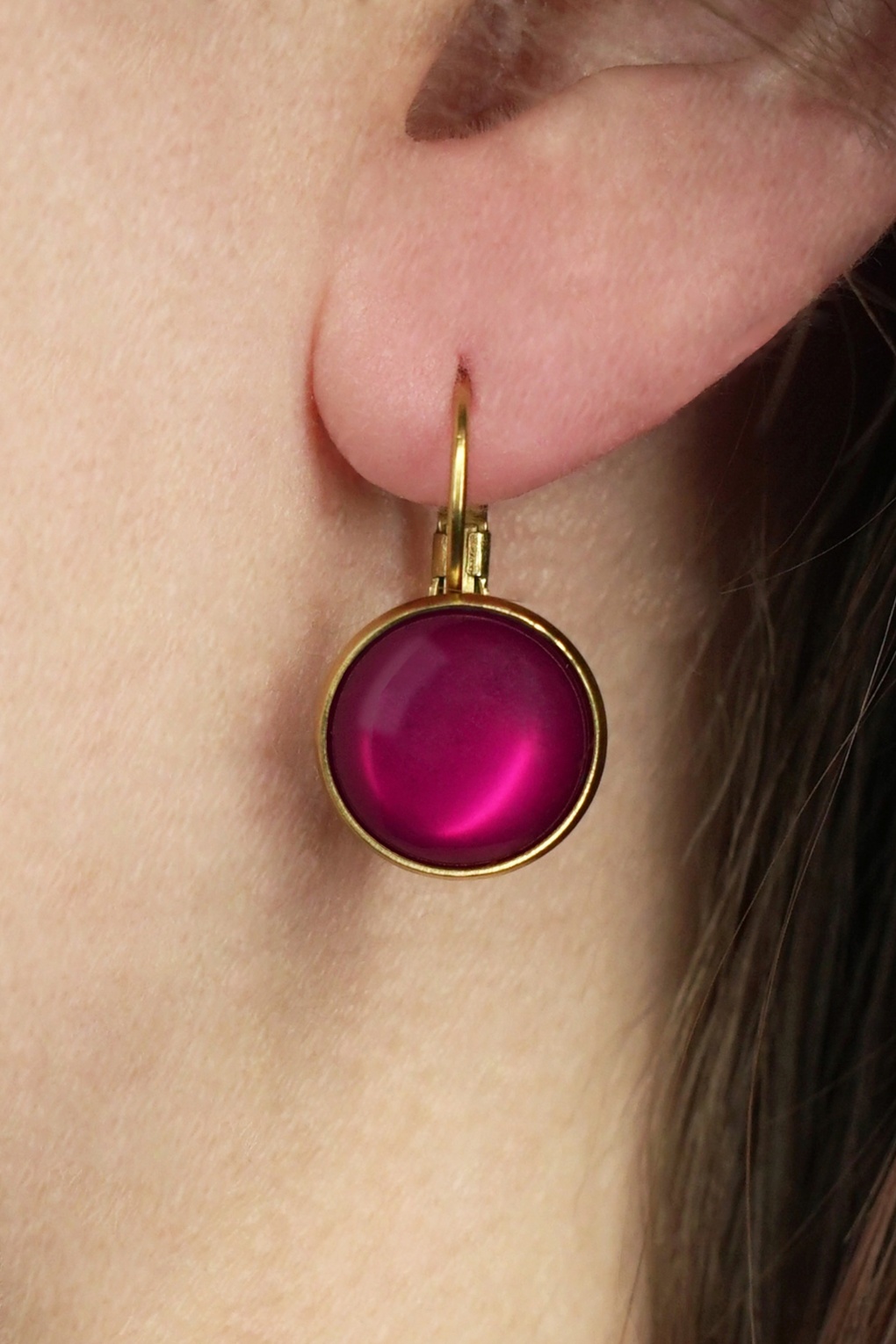 Op zoek naar oorbellen die écht bij iedere outfit passen? Dan zijn deze schatjes perfect voor jou! Of je nu voor de classy fifties look gaat, of toch liever seventies boho chique, deze korte hangers zijn lichtgewicht en passen werkelijk overal bij. Uitgevoerd met een verguld haakje en voorzien van een glanzende, paarsrode steen… ”eye and ear candy!” * Hangertjes * Vergulde roestvrijstalen leverback sluiting * Verkleuren en vlekken niet * Nikkelvrij (anti-allergeen)