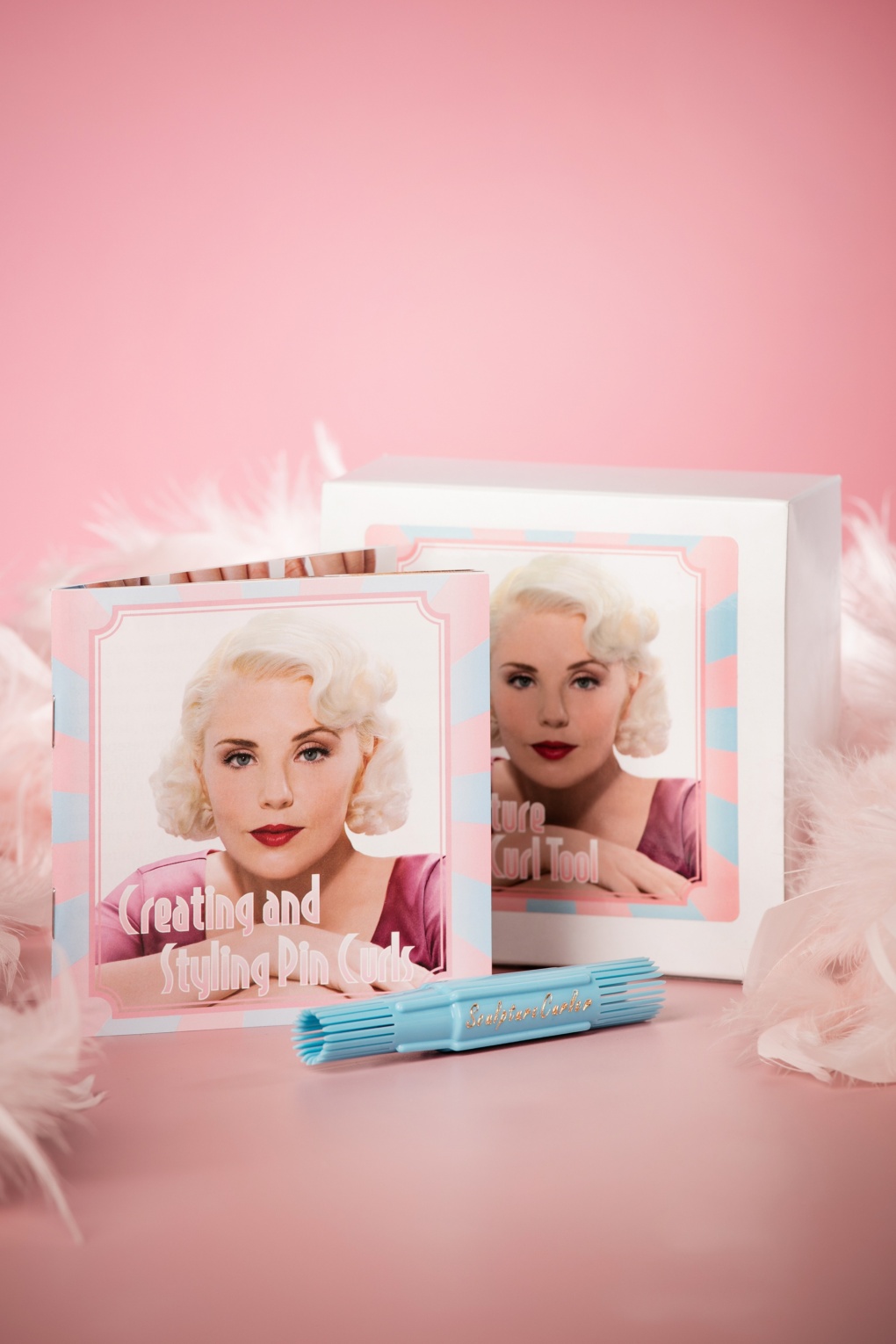 De Sculpture Pin Curl Tool Box Set van Lauren Rennells is een reproductie van een echte styling tool gebruikt in het midden van de 20e eeuw om vrouwen te helpen bij het ​​maken van mooie, gelijkmatige krullen in een handomdraai!  Kapsels met pin krullen waren super populair tijdens de jaren 1930, 1940, 1950 en in de jaren 1960. Deze 50 pagina’s tellende gids geschreven door Lauren Rennells geeft je duidelijke en gedetailleerde instructies over het creëren en stylen van vintage krullen en waves. De bijgeleverde poster heeft meer dan 80 vintage potloodschetsen van kapsel ideeën die je leuk kunt inlijsten. Het hele pakket wordt geleverd in een schattig roze met blauw doosje dat ideaal is om cadeau te doen! Met deze retro haar tool krijg je die gewilde vintage look in een handomdraai!
