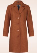”Like wearing a soft cloud of warmth!” Bryanna is de perfecte toevoeging voor jouw garderobe dit najaar! Ze is uitgevoerd in een super zacht, bouclé stofje in een cognacbruine kleur. Bovendien is ze volledig gevoerd met een satijnachtige stof in een tof printje. * Recht model * Gevoerd * Reverskraag * Knopenreeks * Steekzakken * Valt net op de knie bij een lengte van 1,70 m