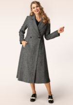 “Grey herringbone, endless charm.” Deze classy mantel is niet alleen prachtig om te zien, maar ze houdt je ook nog eens heerlijk warm! Uitgevoerd in een visgraat geweven, ietwat dikkere, zachte stof in grijs met gekleurde spikkels en een vleugje wol (stretcht niet) die volledig is gevoerd voor extra comfort. * Semi-swing model * Reverskraag * Knoopsluiting * Geheel gevoerd * Lange mouwen * Zijwaartse steekzakken * Knoopdetails aan de achterzijde * Valt ruim over de knie bij een lengte van 1,70 m