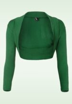De Lady Bolero in Groen van Banned is een klassiek kort vestje in een pittige groene kleur. Uitgevoerd in een soepel stretchy stofje en afgerond aan de voorzijde zodat hij mooi langs je buste valt. Deze bolero heeft een fijne aansluitende pasvorm die mooi in vorm blijft en is de perfecte finishing touch voor iedere retro look!